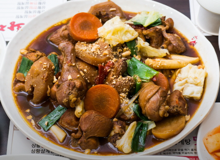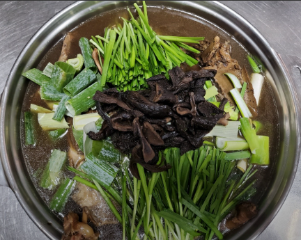 상황버섯과 한방 재료를 넣어 만든 걸쭉한 국물이 특징입니다.