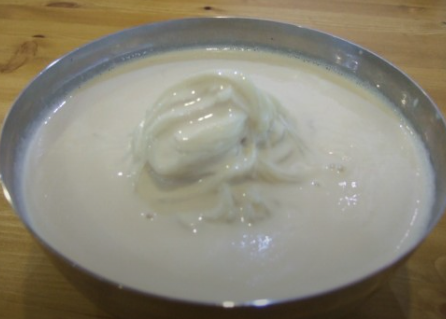 ( 콩물 포장,콩물택배) 단일 메뉴입니다.. 명인콩국수의 전통은 40년 2대째이고, 사계절 냉, 온 콩국수를 즐길 수 있는 인천 최초 콩국수 유일의 전문점입니다. 100% 국산콩만 사용하여 사진 이미지와 같이 견과류 등을 전혀 첨가하지 않고 현대식 고속 맷돌이 아닌 옛날 재래식 맷돌만으로 갈아 만든 크리미 한 콩물 맛이 전국에서도 으뜸이라 생각합니다.
