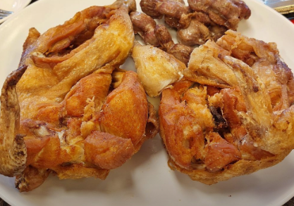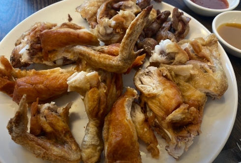53년 전통의 수원통닭골목 원조집입니다. 세월의 흔적이 느껴지는 옛날 닭집 분위기인데요. 닭에 튀김옷을 입히지 않고 바삭하게 튀겨내는 통닭이 인기 메뉴이지요. 닭똥집이 포함된 닭 한 마리가 통째로 나오는 것이 인상적입니다.