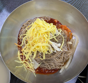 강원도 평창군 내 농가들과 계약 재배한 메밀을 사용하며, 국수를 누를 때 10% 정도 전분을 섞는다. 면발이 깔깔하면서도 메밀 향을 잘 살리고 있다. 육수는 소고기를 쓰지 않고 닭고기 육수에 알맞게 익힌 동치미 국물을 가미해서 밍밍한 편이다. 고명으로 닭고기가 얹어진다.