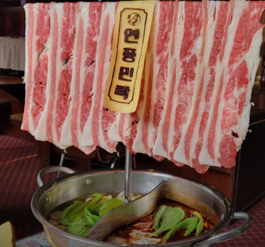 <눈으로 한 번, 입으로 한 번 맛 보는 '홍백 샤부샤부'>